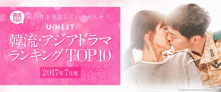 U-NEXTが2017年7月度 「韓流・アジア」ジャンル TOP10を発表 レンタルランキング1位は、「太陽の末裔」!