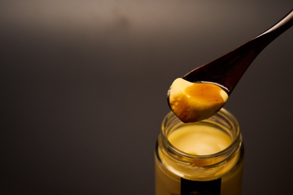 分子ガストロノミーとは、調理を物理的、化学的に解析した科学的学問分野です。「何度で何分加熱すればこの食材のうまみが最大限に引き出せる」など「どうすれば一番その食材を生かすことができるのか」を「化学的な観点からみて解析する」といったような考えで調理を組み立てていきます。「LUXE produced by PUDDING LAB.」のプリンには、主に食材の抽出に分子ガストロノミーの考えを用いてプリンを製造しました。