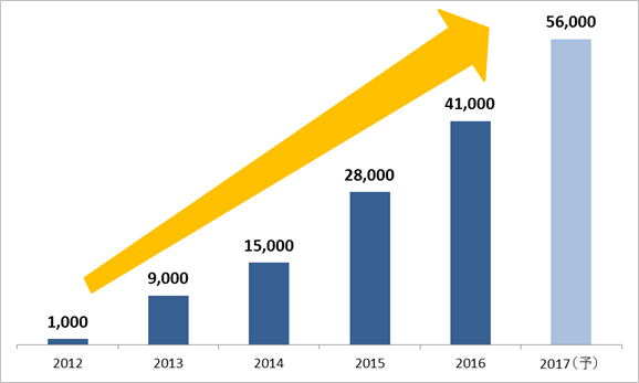 > 受診者数は毎年、前年比約150%と驚異的な伸び(図2)