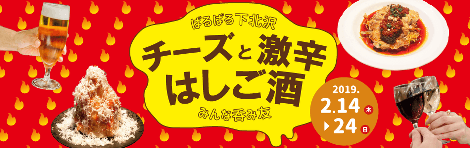下北沢の71店舗ではしご酒イベント開催 寒さを吹き飛ばす激辛料理×とろけるチーズ×お酒を楽しむ11日間 期間:2019年2月14日(木)~2月24日(日)