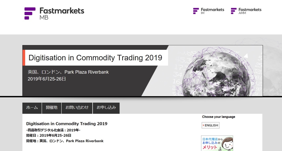 国際会議「Digitisation in Commodity Trading 2019-商品取引デジタル化会議 2019年」(Fastmarkets主催)の参加お申込み受付開始