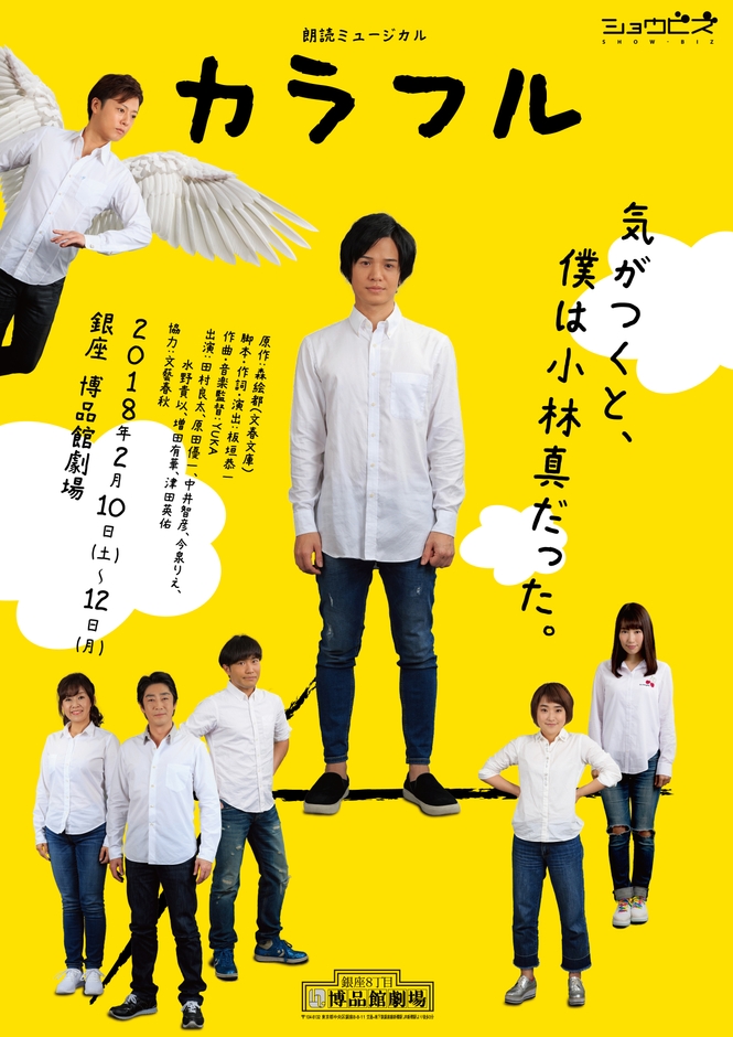 株式会社ショウビズ(本社:東京都世田谷区、代表取締役:坂紀史)は、新作オリジナル朗読ミュージカル「カラフル」を2018年2月10日(土)~12日(月・祝)まで、東京・銀座の博品館劇場にて上演いたします。