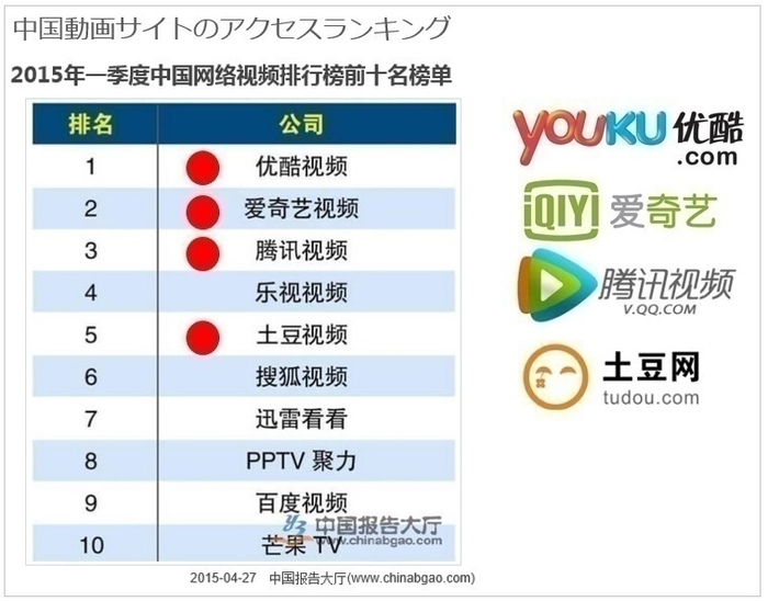 そこで中国のユーザーに対して動画を視聴させるには、中国国内独自の動画プラットフォームに動画を情報公開する必要があります。