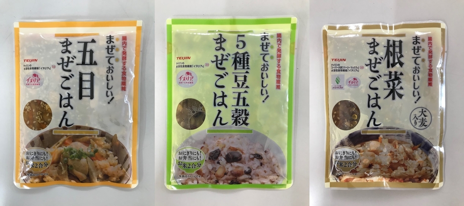 今回、新発売された「まぜごはんの素」の種類は、「五目まぜごはん」「5種豆五穀まぜごはん」「根菜まぜごはん」の3種類です。3種類全てに腸内細菌のエサとなる水溶性食物繊維イヌリア(R)が配合されています。さらに、「根菜まぜごはんの素」にはイヌリア(R)に加え、一般の大麦に比べ2倍の総食物繊維量、3種類の食物繊維(レジスタントスターチ、β-グルカン、フルクタン)を含むスーパー大麦バーリーマックス(R)が配合されており、不足しがちな食物繊維をおいしく補うことができます。白米を2合分炊いて本品1袋をそのまま加えてよく混ぜるだけで簡単に炊き込みご飯風の味が楽しめます。さらに、お茶碗1杯で3.0g以上の食物繊維が摂取できるよう仕上げています。