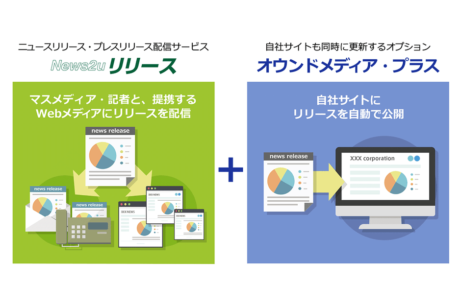 ニューズ・ツー・ユーは、メディアや記者へのリリース配信、提携する配信先メディアサイトへの掲載を可能とする「News2uリリース」と、配信と同時に自社サイトのコンテンツを拡充できる「オウンドメディア・プラス」を組み合わせて提供することで企業の情報発信力の強化を支援してまいります。