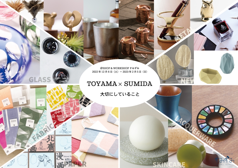 墨田区産業支援施設 SHOP & WORKSHOP すみずみ / sumizumi 2022年12月-2023年2月企画のご案内 『富山×すみだ ~大切にしていること~』