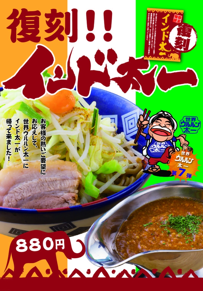 過去に限定販売したインド太一。カレー×まぜそばスタイルでおかげさまでご好評につき、今回復刻版として販売いたします。
