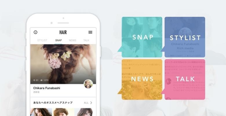 「HAIR」は、60万人が利用するプロのスタイリスト・モデルが投稿したヘアスタイルやヘアアレンジ写真が集まるヘアカタログアプリです。自分にぴったりなヘアスタイルやヘアスタイリストに出会えるサービスとして、2014年5月から運用を開始しました。現在、スタイリスト登録者数は8,700人、ヘアスナップは20万枚以上登録されています。