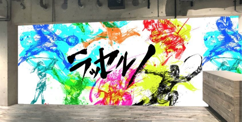 アーティスト 西元 祐貴氏とのコラボレーション作品を店内壁面に大きく配し、このプロジェクトのテーマでもある『NEON』を表現。作品中央「ラッセルノ」のダイナミックなロゴは、西元 祐貴氏が本プロジェクトのために新たに書下ろした作品となります。