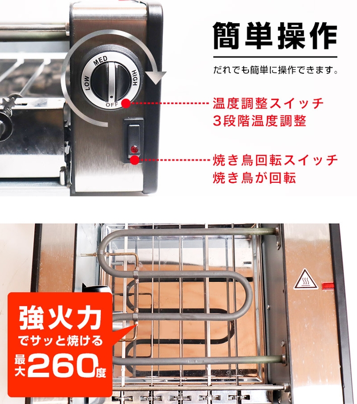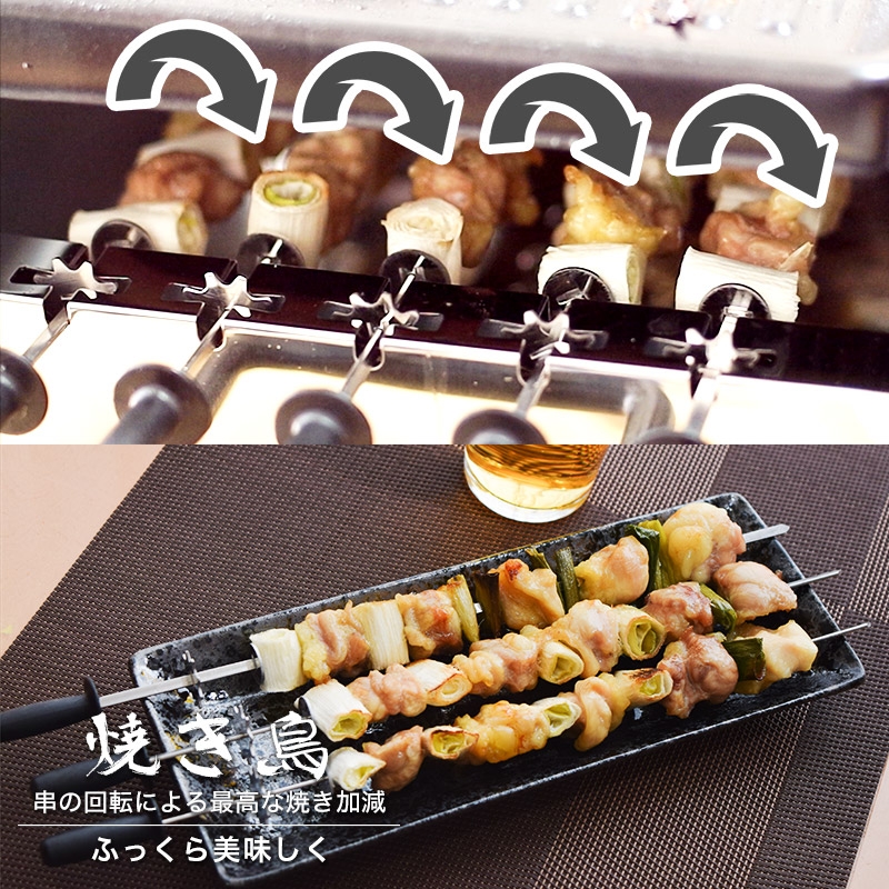 ■自動で回転してムラなく美味しい焼き鳥ができる