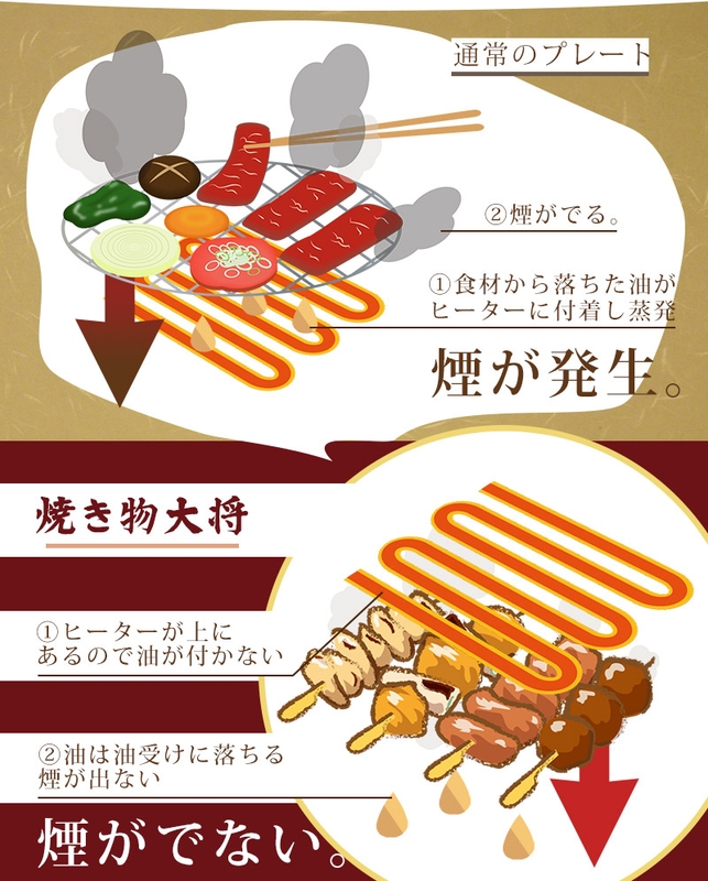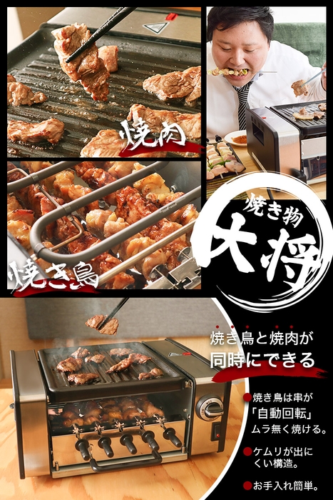 自動で回転して美味しく焼き上げる焼き鳥とプレートで焼き肉が同時に楽しめる『自動回転焼き鳥&焼肉プレート『焼き物大将』』を発売開始