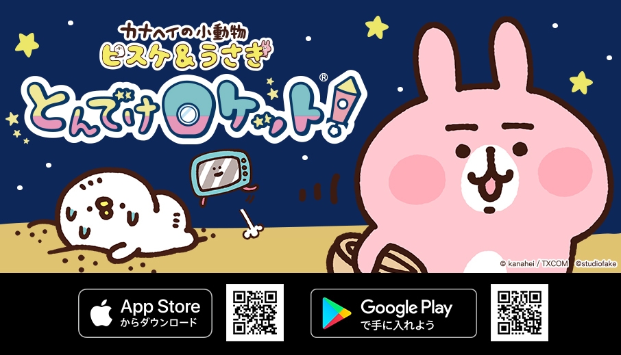 株式会社スタジオフェイク(本社:神奈川県川崎市、代表取締役:石本則子、岡安啓司)は、株式会社テレビ東京コミュニケーションズ(本社:東京都港区、代表取締役社長:大島信彦)が広告・商品化・映像化の独占窓口を務めるキャラクター、カナヘイの小動物「ピスケ&うさぎ」のiOS/Android(TM)端末向けパズルゲーム『カナヘイの小動物 ピスケ&うさぎ とんでけロケット!(R)』に追加機能を多数実装した「グランドオープン版」を2019年5月15日より配信開始いたします。