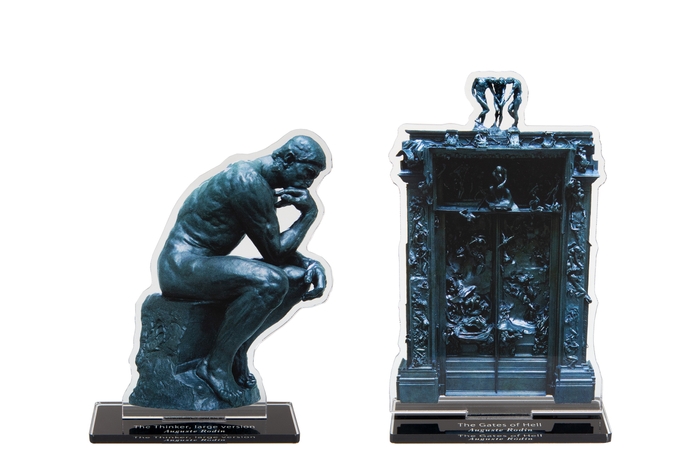 オーギュスト・ロダンの代表作《考える人》と《地獄の門》は美術館を代表する作品。その重厚なブロンズ像をレプリカよりももっと気軽に自宅に飾りたい! そんなお声に応えるべく、近年人気のアクリルスタンドにしました。