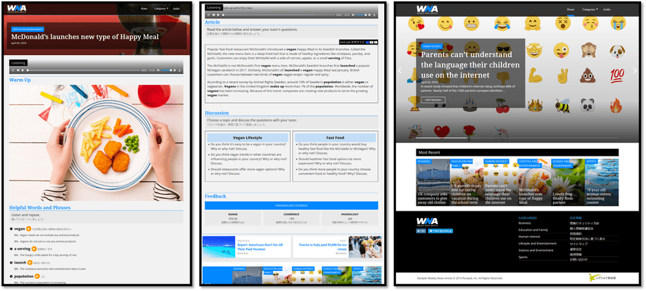 英語関連事業を運営する株式会社レアジョブ(以下、レアジョブ)は、オンライン英会話サービス「レアジョブ英会話」にて、教材の大幅リニューアルを行い、新たに『Weekly News Article』『Pronunciation: Basic Sounds』『Conversation Questions』の提供を開始しました。