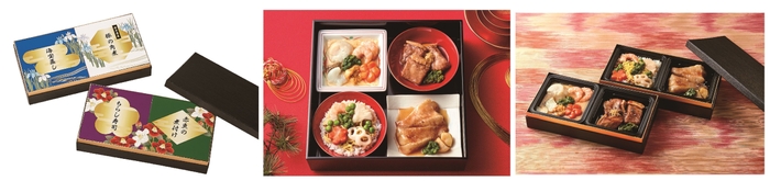 「肉の趣深い旨み、山海の幸の華やかさ、野菜の香味」を追求し、大切なひとときに彩りを添えられる商品として「正月二段重セット」を開発しました。2012年以来、今年で7年目の販売となり、新年の門出を祝う期間限定商品として定着しました。また今年は『正月二段重セット』発売以来、初めての取り組みとして一層豪華な『正月二段重セット 八品詰め合わせ』をラインナップし、顧客のニーズや好みなどに対応いたします。さらに産地にこだわった新メニューとして、岩手県産の豚肉を使用した「岩手県産豚の角煮」、同じく岩手県産の鶏肉を使用した「岩手県産鶏の照焼き」、山形県産もち米の「赤飯」、そして北海道産の大粒の帆立を使った「北海道産帆立のガーリックバター焼き」をご用意しました。