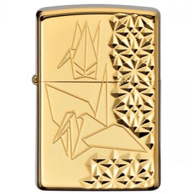 鏡面の金メッキに、日本伝統の折り鶴が彫刻された日本を連想させるZippoライター。深く彫刻されており、角度を変化させることで輝きを放ちます。表面はチタン加工が施されており、通常の金メッキより耐久性に優れています。