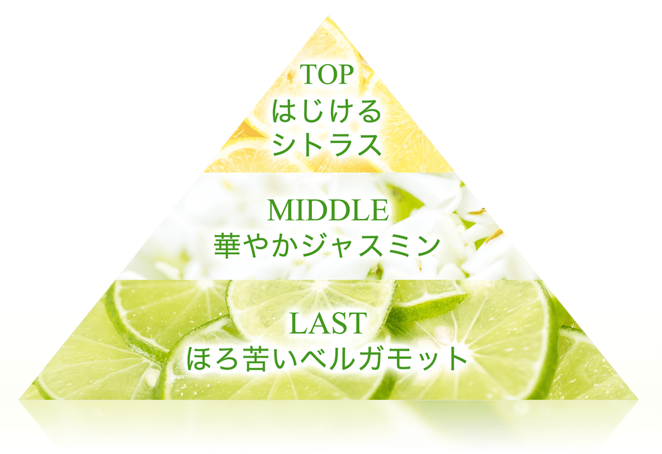 爽やかでビターな甘い香りが、心をゆっくりほぐしながら、明るい気持ちに導きます