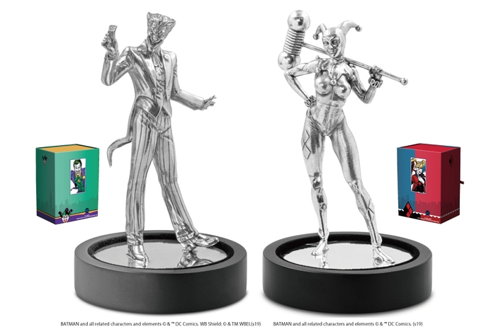 ファン垂涎!皆殺しの笑いを浮かべる「ジョーカー」& 特大ハンマーを手にした「ハーレイ・クイン」が銀製フィギュアに DCコミックス『ジョーカー』映画公開直前に登場!