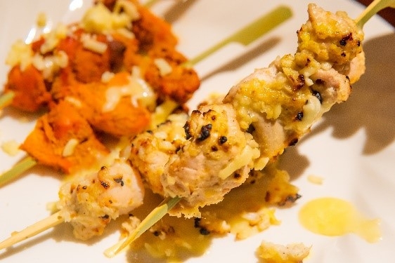 ①BBQチキンガーリックチーズがけ(ピリ辛味2本&クリーミー味2本) 800円