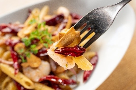 ①赤×白いつぼ渾身のペペロンチーノペンネ Sサイズ:800円、Mサイズ:1,000円