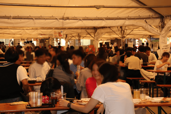 11時のオープンから19時まで、「大ハッピーアワー」を開催しています。アルコール全品オール300円でドリンクブースには行列ができています。明日から始まる三連休も「大ハッピーアワー」の対象です。赤&白ワインもご用意しているため、料理との最高のマリアージュをお楽しみいただけます。