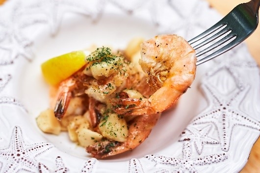②ソフトシェルシュリンプのアヒージョ 1,000円