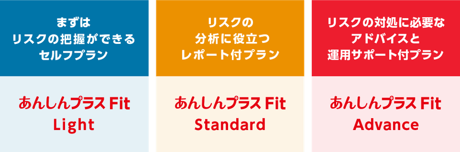 「セキュリティ対策を見直したいが何から始めれば良いか分からない」「セキュリティ専任者がいないので運用できていない」などの悩みを抱えている中堅・中小企業向けに、お客様の運用体制にフィット(Fit)するサービスをパッケージングし、まずは以下の3つのプランから提供いたします。