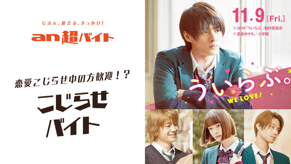 累計発行部数180万部を突破した星森ゆきもの人気コミックを実写化した、2018年11月9日(金)公開の映画『ういらぶ。』が「an超バイト」とスペシャルコラボ!