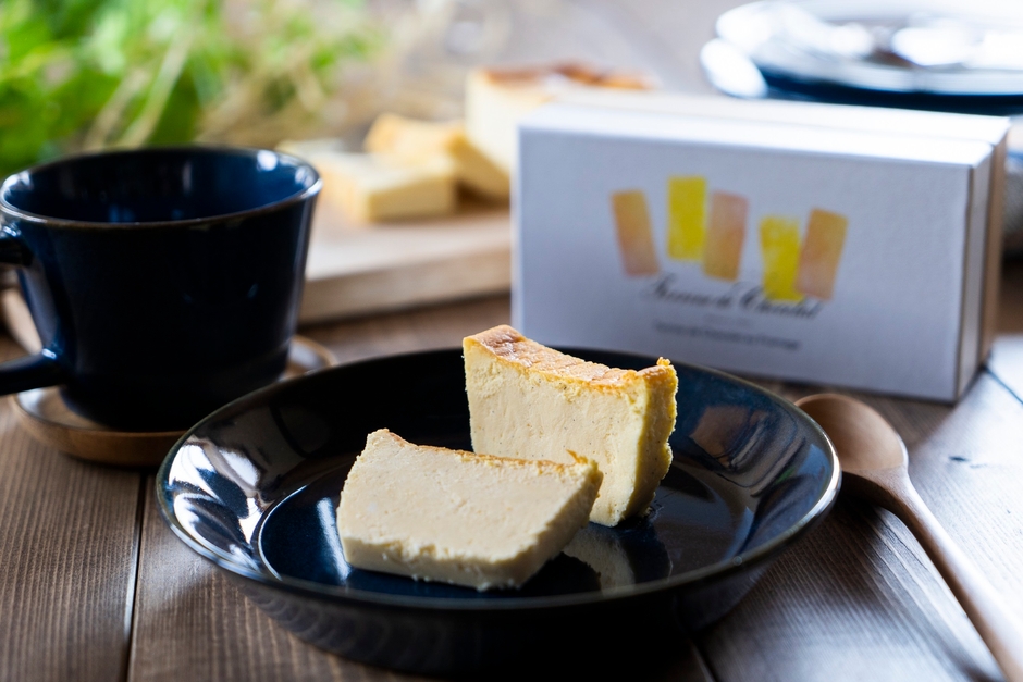 フレンチのデザートとして認知度の高いクレームブリュレのような滑らかな舌触りです。湯煎焼きをすることで上はベイク、下はレアチーズのようなひとつで二度美味しい食感を実現しました。高温と低温の二度焼きをしながらも、とろける口当たりを求めてギリギリの火入れを行っております。