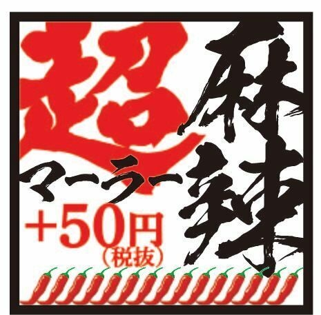 「麻辣担々麺 780円(税抜)」を、最大3倍にまで辛さを上げる事が出来るトッピングです。麻辣担々麺に+50円(税抜)で「超マーラー担々麺」をお楽しみ頂けます。「麻」と「辣」の2つの辛味を、お好みで調整しながらお召し上がりください。