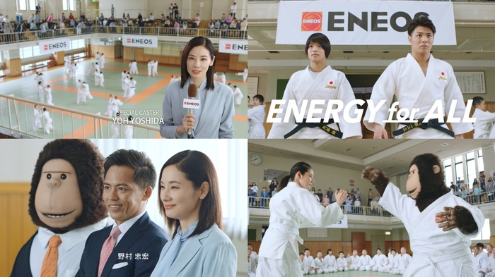 CMでは、東京2020オリンピックで活躍が期待される柔道界最強の兄妹、阿部一二三(ひふみ)選手と阿部詩(うた)選手、そして日本柔道界のレジェンド・野村忠宏さんが登場。野村さんが見守る中、オリンピック選手を目指し厳しい稽古に励む子どもたちのもとへ、ENEOSエネルギーソング「その日は必ず来る」とともに、阿部兄妹が熱いエネルギーを届けます。子どもたちの姿を見た女優吉田羊さんとエネゴリくんも柔道に挑戦。どのような技が展開されるのか、二人の勝負にもぜひご注目ください。