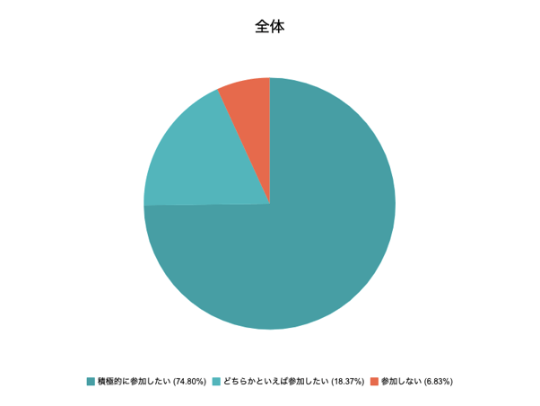 また今後のインターン参加意向については、参加したいと回答した学生は全体で約93%、積極的にインターン参加を望んでいる学生は約75%という結果になり、学生のインターンに対する前向きな態度が伺えます。