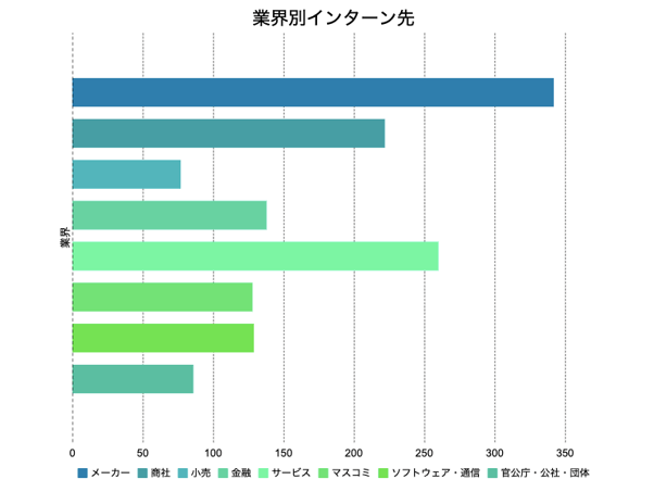インターンで人気の業界は、メーカーやサービス、商社などとなっています。