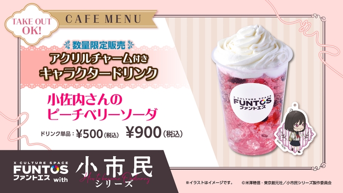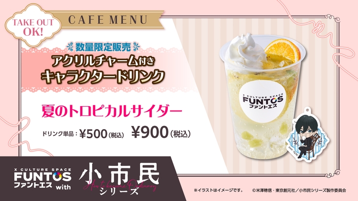 期間中(8月30日~9月24日)、アクリルチャーム付きドリンク900円(税込)、ドリンク単品500円(税込)にて提供いたします。