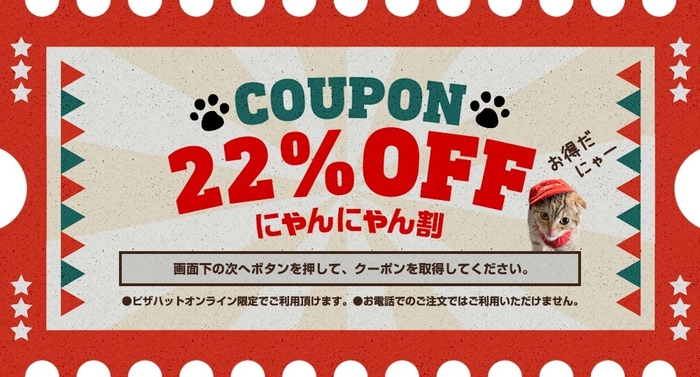 ~猫の手も借りて広めたい“にゃんにゃん割”22%OFFクーポンを配布~