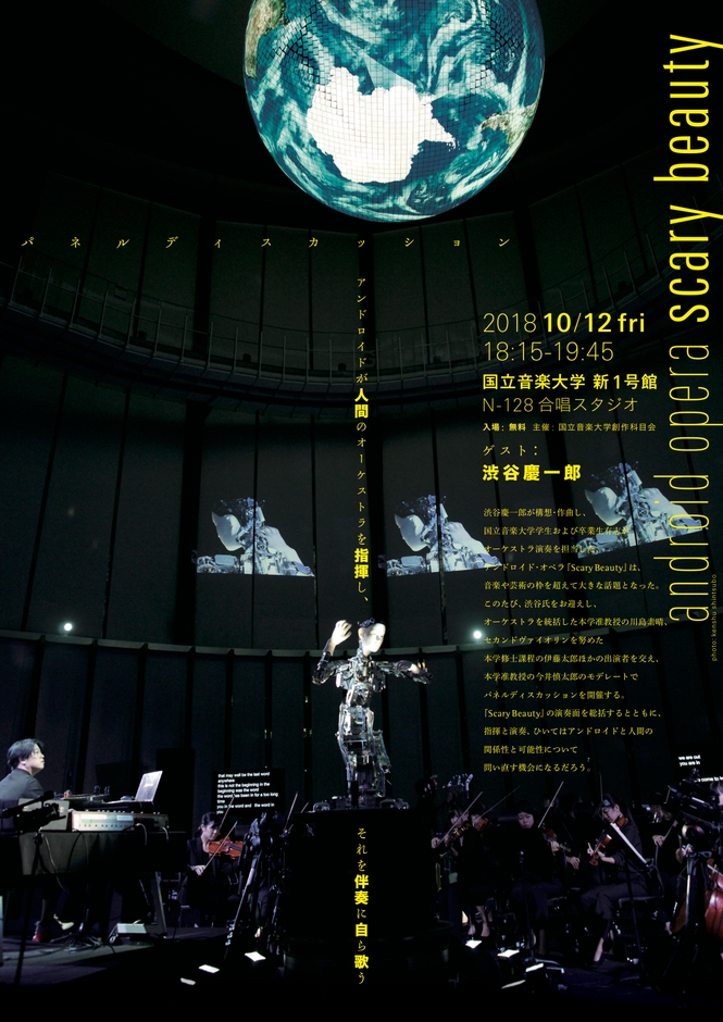 国立音楽大学(所在地:東京都立川市、学長:武田忠善)では、来たる2018年10月12日(金)、作曲家の渋谷慶一郎氏をお迎えし、アンドロイドオペラ『Scary Beauty』パネルディスカッションを開催いたします。