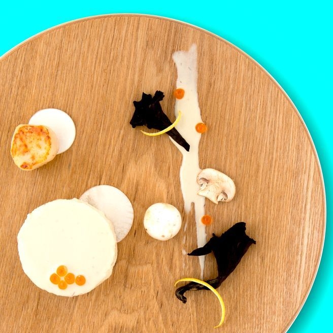 ・クリーミーな帆立貝のフラン、2種のキノコ添え