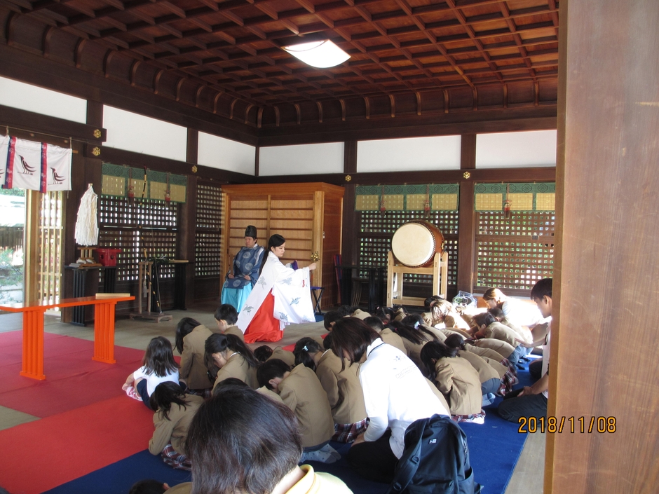 5歳児までの教育保育に取り組んでいる御影インターナショナルこども園(神戸市東灘区、西野雅二園長)は2018年11月8日(木)、近くの弓弦羽(ゆづるは)神社で七五三詣でを行い、日本文化を体験しました。