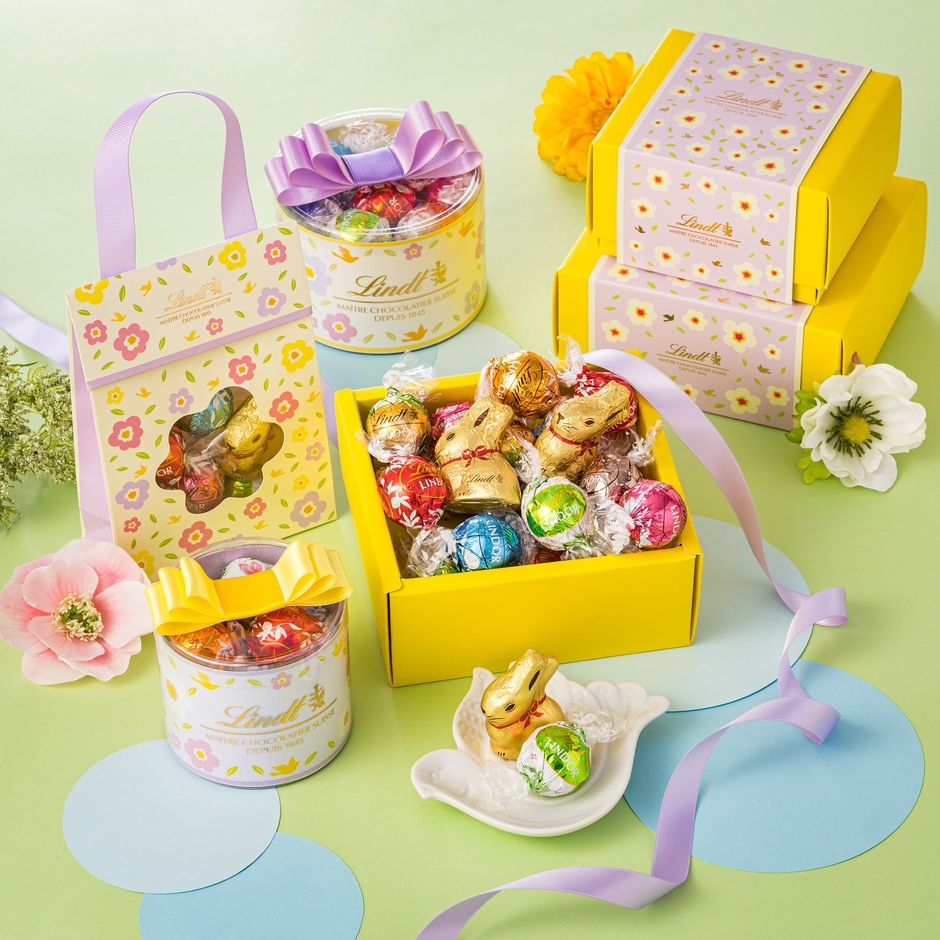 他にも、春の訪れを告げるリンツのイースターのシンボル「LINDT GOLD BUNNY リンツ ゴールドバニー」と、エッグ型の「LINDOR リンドール」やキャロットをイメージしたアンブレラ型のチョコレートを組み合わせた「イースターコレクション2020」第2弾が新登場します。春の贈り物におすすめのチョコレートギフトが勢ぞろいいたします。