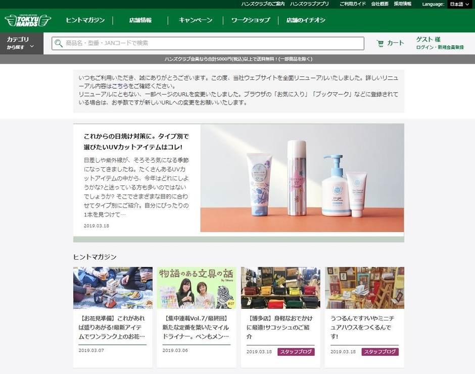 東急ハンズWEBサイト リニューアルのお知らせ ~楽しい暮らしのヒントを毎日お届け~