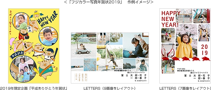スマホに撮りためたたくさんの写真を、高画質な写真年賀状に! 「平成ありがとう年賀状」企画として干支イノシシの限定デザインもラインアップ 「フジカラーの写真年賀状」本日より受付開始