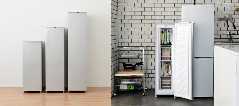 そこで当社は、業界最小幅(※1)で置き場所に困らない「冷凍庫 SUシリーズ」を発売いたします。