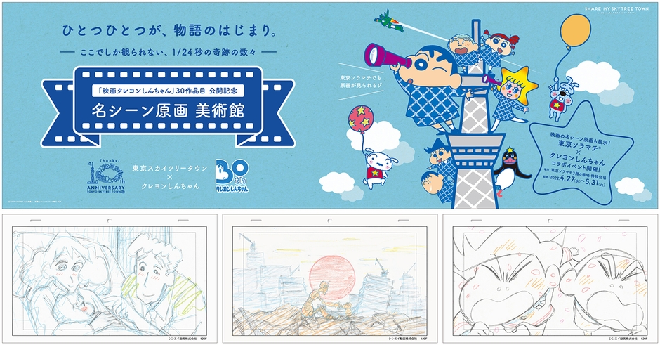 クレヨンしんちゃん×東京スカイツリータウン(R) 『映画クレヨンしんちゃん30作品記念企画』のお知らせ。 感動シーンの数々…! 30作品公開記念イベント開催! 「映画クレヨンしんちゃん」名シーン原画美術館 4/27(水)~5/31(火)東京ソラマチ(R)