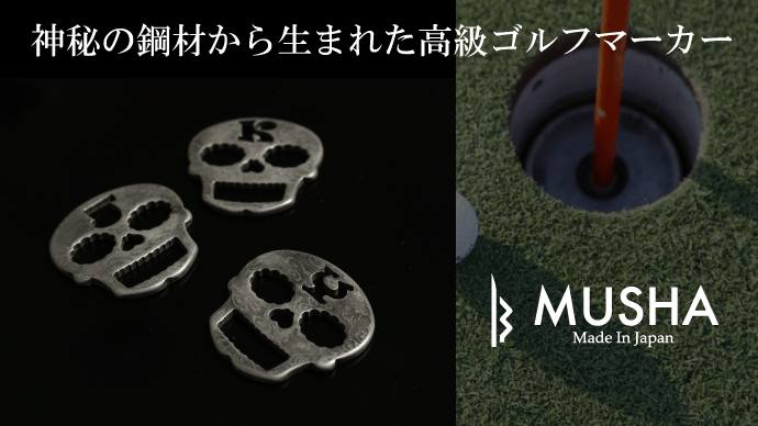 刃物のまち岐阜県関市にて2017年12月より創業した刃物の技術や材料を活かし、ファッションアイテム等に活用するプロダクトブランド「MUSHA made in Japan」(ムシャメイドインジャパン)より、世界で一つだけの模様が浮かびあがる神秘の鋼材「ダマスカス鋼」を使用したゴルフボールマーカーを2019年2月14日にクラウドファンディングサイト「Makuake」にて発表しました。