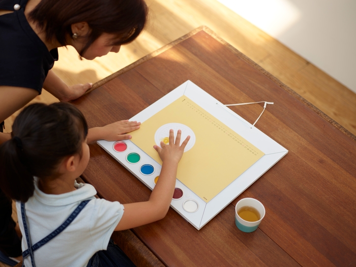 『お絵かきボードカレンダー Atelier mio(アトリエ ミオ)』は、イタリアの印刷加工会社Moglia社との協業商品です。「親子」や「グローバル」をテーマに制作に取り組む中で、イタリアのアート教育「レッジョ・エミリア・アプローチ」に出会いました。世界でも高い評価を受け、日本でも注目されているこの幼児教育のアプローチからインスピレーションを受けて形になりました。