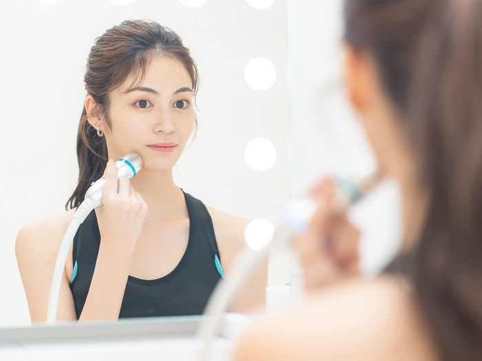 高密度の超音波によって特定の筋膜に熱エネルギーを直接届けることで、その皮膚層のたんぱく質が収縮してたるみを引き締める効果が得られます。また、熱刺激を受けた組織は新しいコラーゲンを活発に生成するので、肌の弾力が改善されてリフトアップ効果を生み出します。