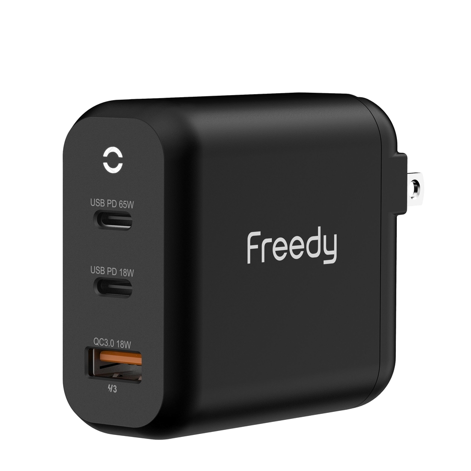 コンパクトながらデバイス3台まで同時高速充電 Freedy『65Wマルチポートチャージャー GaN』を販売開始
