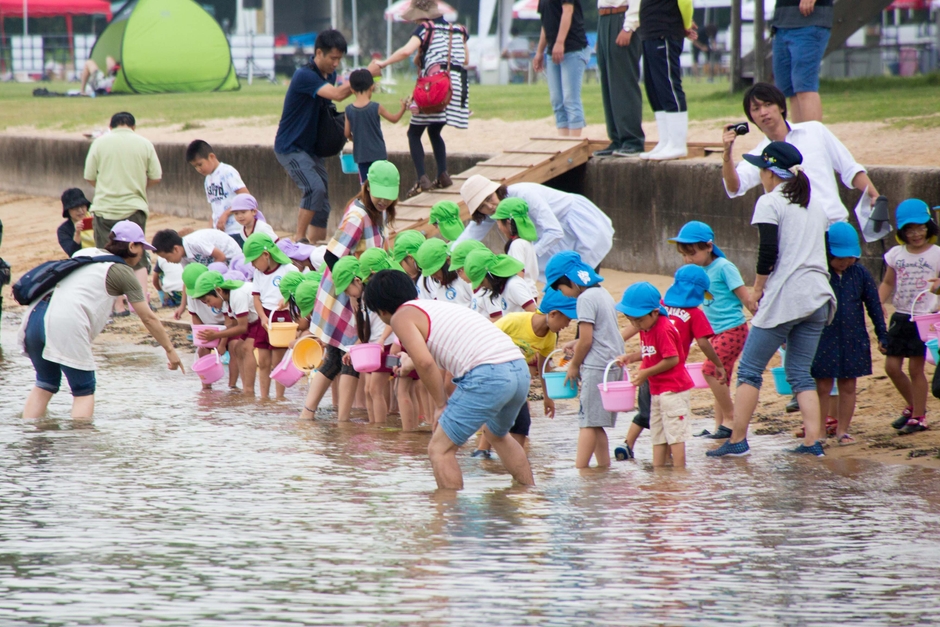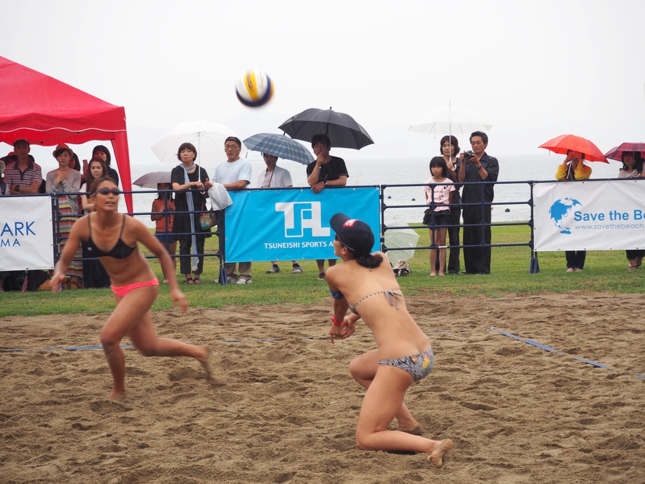 2015年7月4日(土)広島県福山市のシーパーク大浜(http://seapark-ohama.net/)で「Save the Beach in シーパーク大浜」を開催しました。会場には、ビーチバレーの西村晃一選手やインドアバレー越川優選手など現役トッププレイヤーがゲストとして参加。雨空の中、会場には多くの方にご来場いただきました。