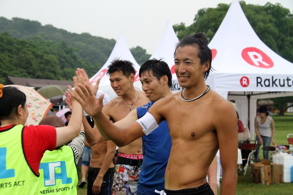 雨の中たくさんの方に来ていただき、ありがとうございました。ビーチバレーを初めて観ていただいた方も多くて嬉しいです。ビーチバレーは世界ではメジャーな競技で、ビーチがないところでもコートを作って大会をするんです。過去のワールドツアーのフランスではエッフェル塔の前で開催していました。オリンピックでは観客動員数が一位になるほど人気のスポーツなんですよ。僕らもオリンピック目指してがんばっていますので、応援していただけたらと思います。ありがとうございました。
