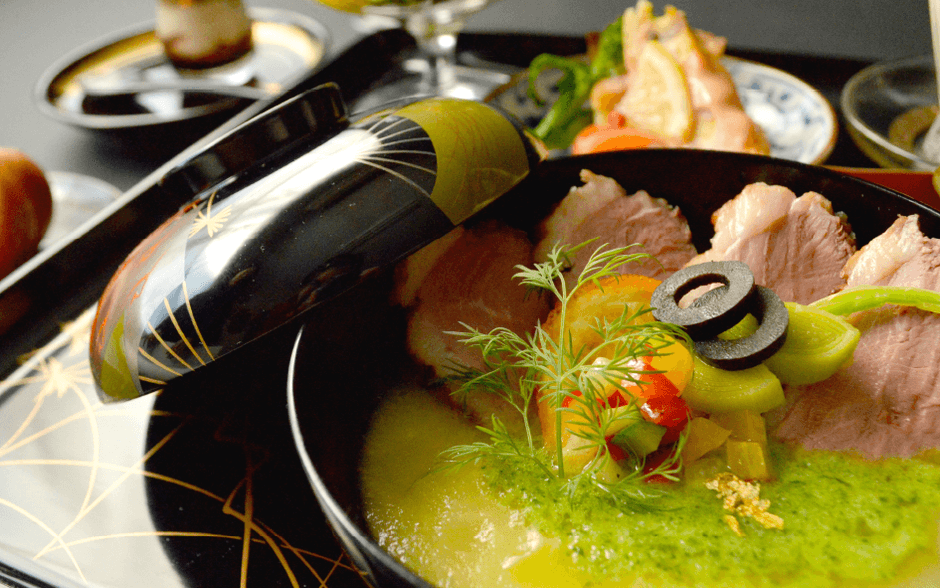 日本伝統の食器(漆器)は、堅牢だけでなく色彩が鮮やかで華やかな食器です。その漆器職人の手により作られた食器でお食事をお楽しみください。